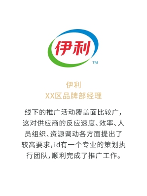 i-d先后經(jīng)歷與Audi、Mercedes-Benz、infiniti、PORSCHE、可口可樂(lè)、麥當(dāng)勞、肯德基、Budweiser、華為、小米、中國(guó)移動(dòng)、ELLE、L'OREAL、萬(wàn)達(dá)、仁恒置地、恒大、碧桂園、蘭桂坊...的業(yè)務(wù)合作,成功地將國(guó)際化的營(yíng)銷(xiāo)策劃理念及執(zhí)行方式融入本土,為更多的中國(guó)企業(yè)開(kāi)啟全新的品牌推廣思路和執(zhí)行方案。
